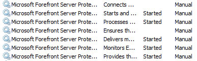 Kurulum  bittikten sonra servislere Forefront Protection 2010 For Exchange ile ilgili servisler eklendi. Buraya kadar olan aşamada genel bilgi ,gereksinimler ,download ve kurulum işlemimizi tamamladık. Bu aşamadan sonra programımızı adım adım tanıma ve program üzerinde işlemler yapmaya başlayacağız.Bundan sonraki aşamaları yer yer resim üzerinde yer yer örnekler ile açıklamaya çalışacağım.