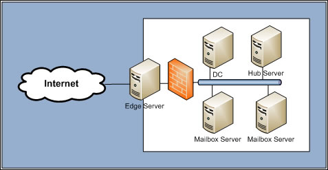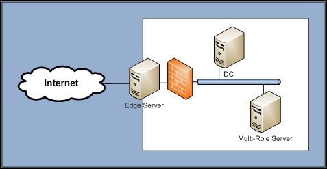The Standard Reference Architecture (SRA) is intended to be a scalable unit targeted at small to medium sized organizatiStandart Referans Mimarisi (SRA) orta ölçekli kuruluşlar için küçük yönelik ölçeklenebilir bir birim olarak düşünülmüştür. As shown in the following illustration, it is comprised of a dedicated Edge Transport server, one or more multi-role servers that encompass the Hub Transport server, Mailbox server, and CAS roles, and a dedicated Active Directory server. Aşağıdaki resimde gösterildiği gibi, Hub Transport sunucusu, Posta Kutusu sunucusu ve CAS rolleri ve özel bir Active Directory sunucusuna kapsayacak özel bir Edge Transport sunucusu, bir veya daha çok rol sunucuları oluşmaktadır.