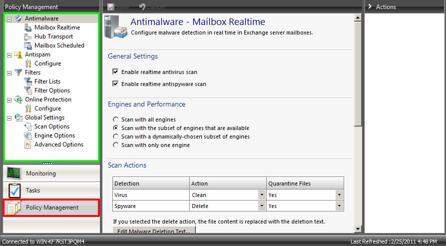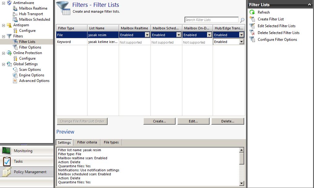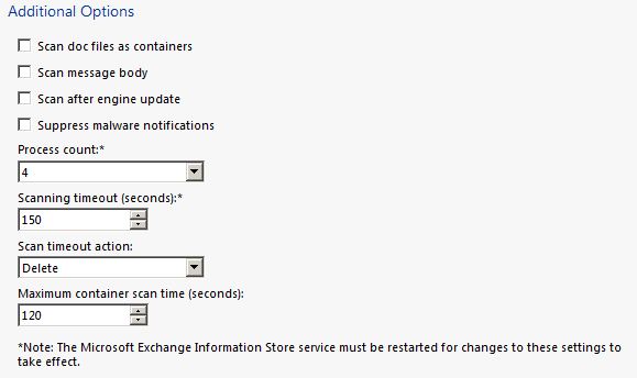 Mailbox Realtime :Bu ekranda mailbox rolü üzerinde gerçek zamanlı malware taraması yapılır. Bu taramalar güncel imzaya sahip olan programa entegre olarak çalışan virüs motorları ile gerçekleştirilir.Bu ekranda tarama ile ilgili bazı ayarlar yer almaktadır. Bu ayarlara resimlerle birlikte bakarak kısa kısa açıklama işlemini yapalım.
