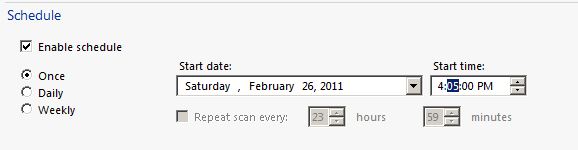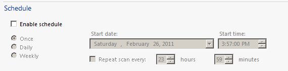 Yukarıda görüldüğü gibi bir kez tarama yapacak olan iş tanımladım. Bunu haftalık ve aylık yapma imkanına sahibi. Bu işlemin başlaması için Save ile işlemimiz kaydetmemiz gerekmektedir. İşlem başlayınca yeşil Start pasif hale gelecek ve pasif stop kırmızı hale gelecektir.