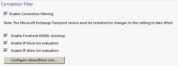 Bu kısımda gerekli connection filteringlerin aktif ve pasif olma ayarları yapılmaktadır. Yani yasakladığımız bir ip bloğu ile mail trafiğimiz duracak veya izin verdiğimiz bir ip bloğu ile sorunsuz mail trafiğimiz işleyecektir.