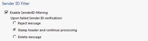 Bu kısımda sender id filtering açık olup olmama ayarı ve gerekli policy kapsayan mail trafiğinde uygulanacak olan aksiyon seçimi yapılmaktadır.