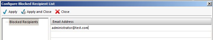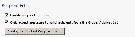 Örnek 3 : Sistemimizdeki bir mail adresine dışarıdan hiçbir şekilde mail atılmamasını sağlamak. Bu işlem için Configure Recipient List seçeneğinden mail almasını istemediğimiz kullanıcımızın mail adresini listeye ekliyoruz. Bu ekranımızda da import export işlemi yapılabilmektedir.