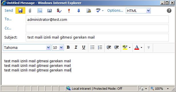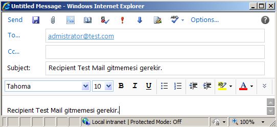 Admin kullanıcısına izin verilen domainden bir mail atma işlemi yapıyoruz.