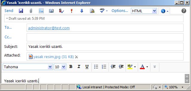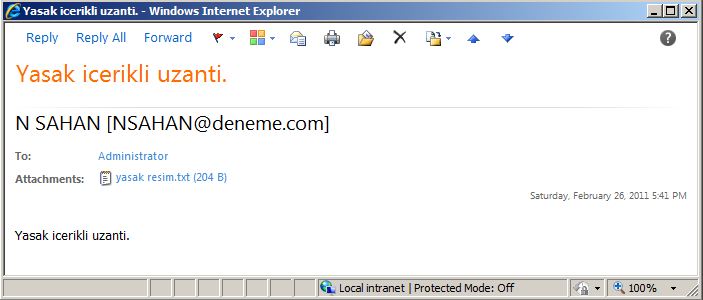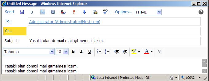 Şimdi yasaklı olan domainden bir mail yolluyoruz.