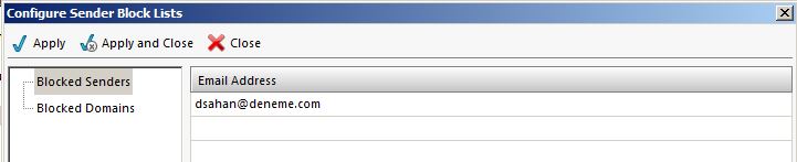 Bu ekranımızda Sender Filter özelliğinin aktif olup olmaması ve block listlerin tanımlanması yapılmaktadır. Bu alanda mail bazında ve domain bazında bize mail atanların engellenmesi yapılmaktadır.