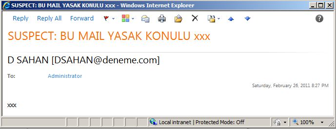 Gelen mailimizin subjet bilgisine xxx haricinde Suspect: Bu Mail Yasak Konulu bilgi eklendi. Bir çok isp pop hizmeti veren firmada bu özelliği kullanmaktadır. Kullanıcılar dilerse bir filtre tanımlayıp bu şekilde bir subject bilgisi olan maili silmekte yada farklı klasöre düşecek şekilde ayarlayabilmektedir.