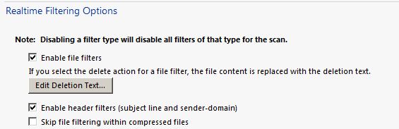 Bu ayar bölmesinde gerçek zamanlı filtreleme yapıldığında filtreleme sonucunda silinme actionu uygulandığında silme sırasında karşı bildirim txt dosyası içerisinde hangi metnin olacağını belirleyebilir kendi mimarimiz doğrultusunda yapılandırabiliriz. Hatırlarsanız jpg dosyasını sildirdiğimizde txt içerisinde yer alan bilgide tanımlanmış bir metin vardı. O metnin ayarı bu kısımlardan düzenlenmektedir. Burada gerçek zamanlı filtrelemeyi , konuya eklenecek olan metin bilgisini ve sıkıştırılmış dosyaların taranmasını devre dışı bırakabiliriz.