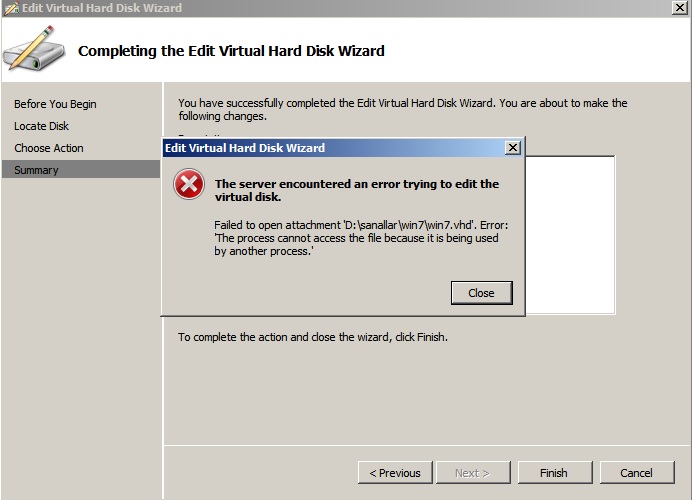 Hyper-v uzerinde dynmic bir diskinizi compact etmek isterken asagidaki hatayi alirsaniz.
