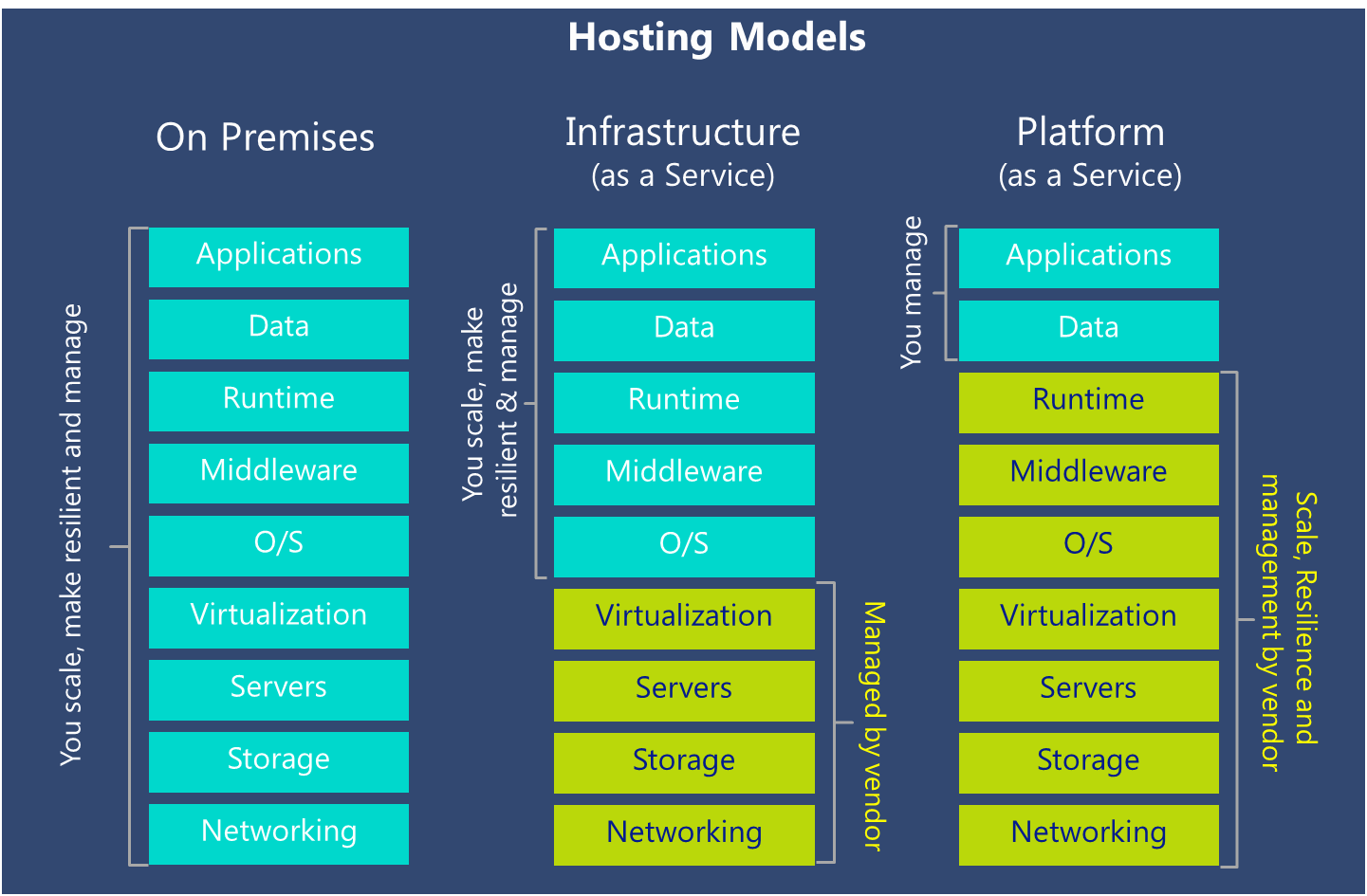 PaaS ‘ta ise sadece kendi datamızdan ve uygulamalarımızdan sorumlu olmuyoruz uygulamaların üzerinde çalıştığı işletim sistemi dâhil hiçbir şey ile ilgilenmiyoruz. Mesela Windows Azure SQL buna güzel bir örnek.