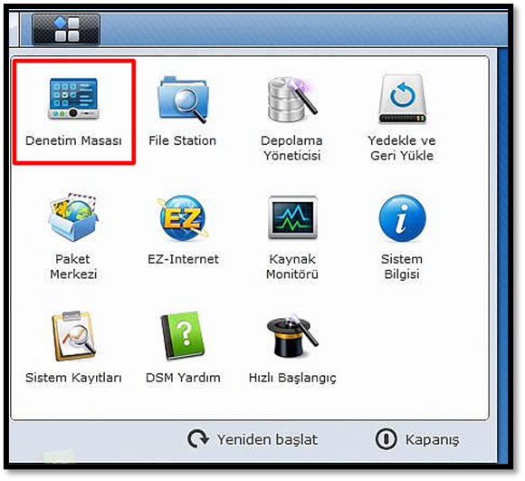 Synology üzerinden denetim masasına masaüstünden veya menüden girelim.