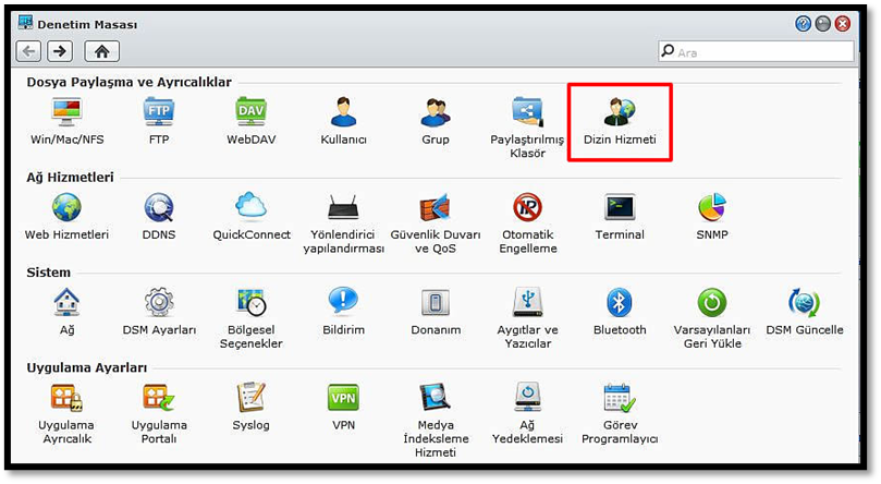 Denetim Masası içerisinde “Dizin Hizmeti” butonuna tıklayalım.