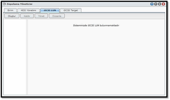 Bir ISCSI Lun tanımlaması yapılmadığı için bu ekranımız boş gelmektedir.