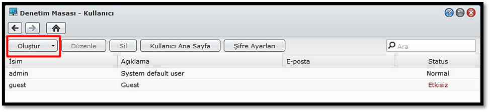 Açılan ekranda “Oluştur” butonuna tıklayalım.
