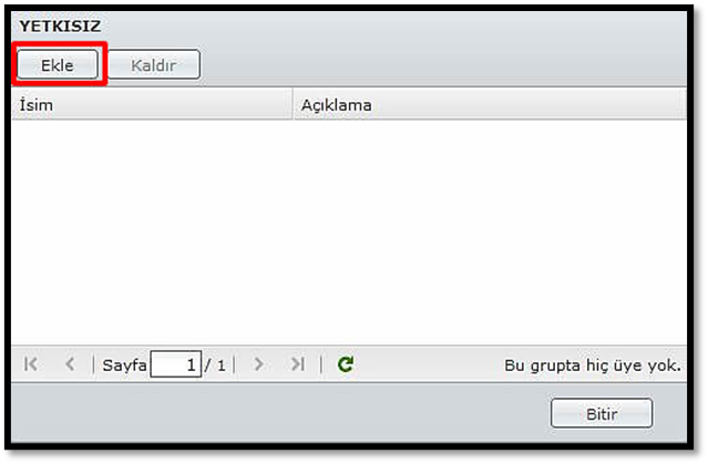 Aynı işlemi YETKISIZ grubu için yapalım.