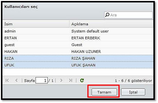 Üyelerimizi seçip “Bitir” butonuna tıklayalım.