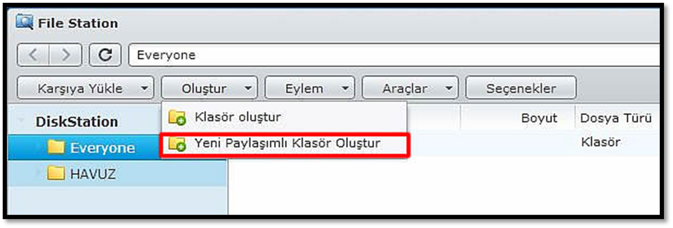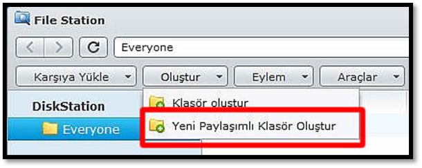 Açılan menüden “Yeni Paylaşımlı Klasör Oluştur” kısmına tıklayalım.