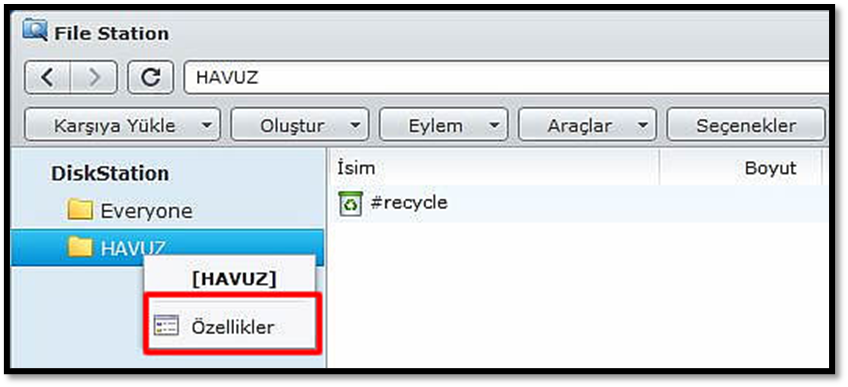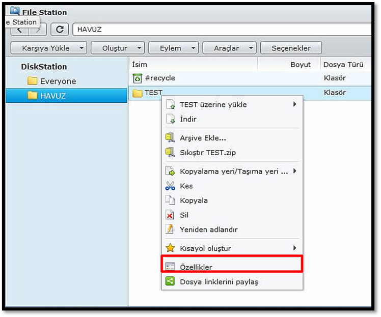 Oluşturulan klasörümüze sağ tıklayıp “Özellikler” menüsüne tıklayalım.