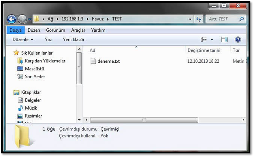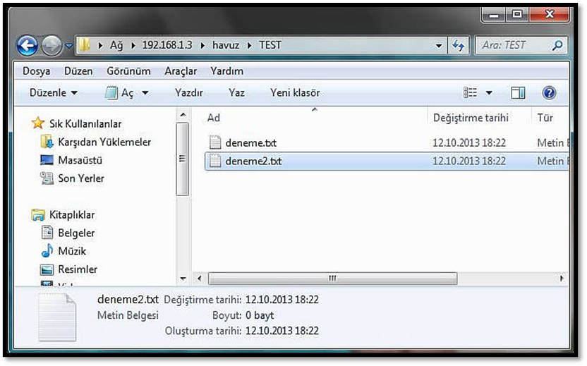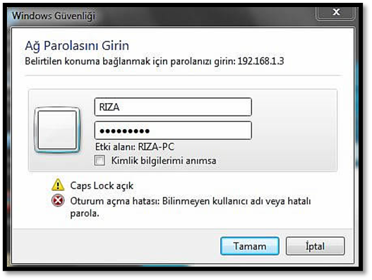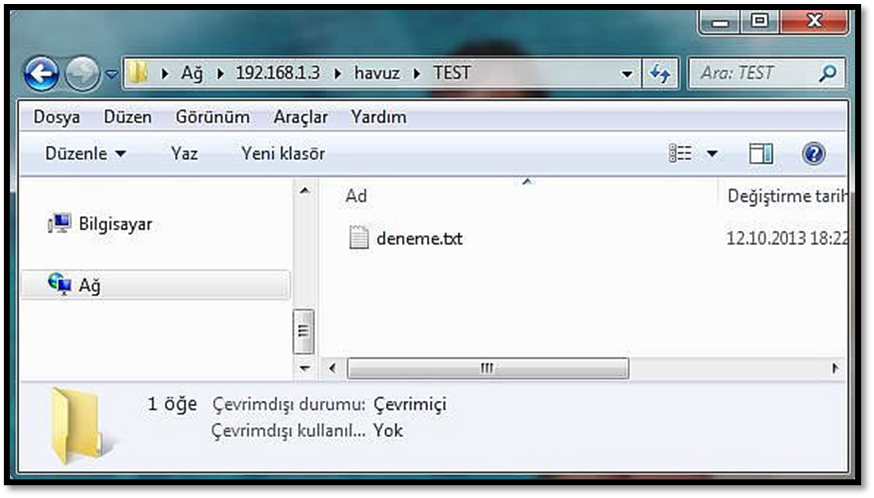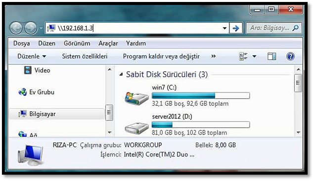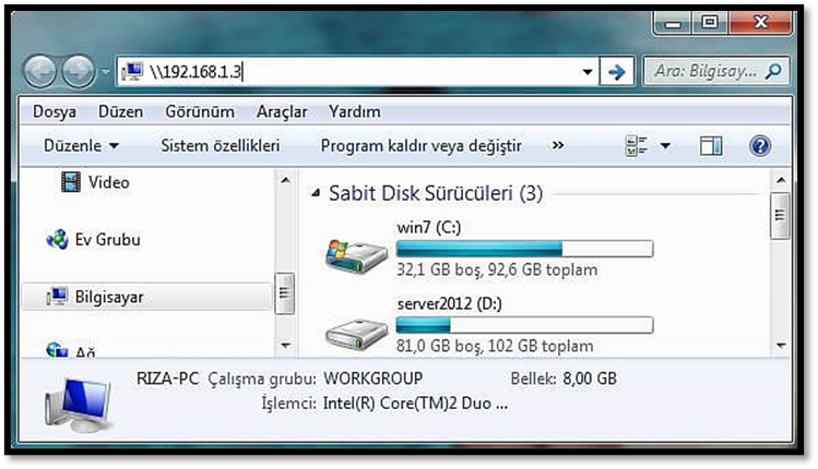 Şimdi test edebiliriz. \\192.168.1.3 ile cihazımıza giriş yapalım.