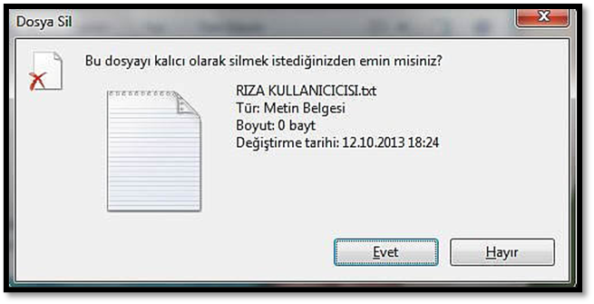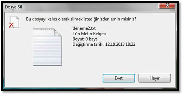 Görüldüğü gibi yetkilerimiz doğrultusunda dosyamızı silebiliyoruz.