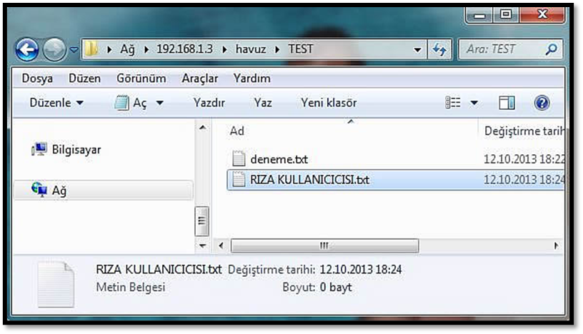 YETKISIZ grubuna burada her işlemi yapma hakkını verdik fakat silme hakkını vermedik. Oluşturduğumuz dosyayı silmeyi deneyelim.