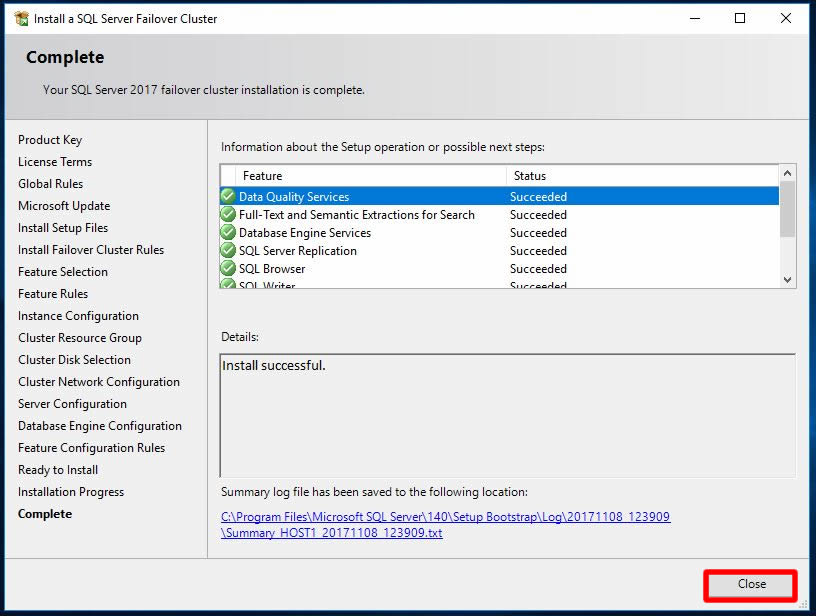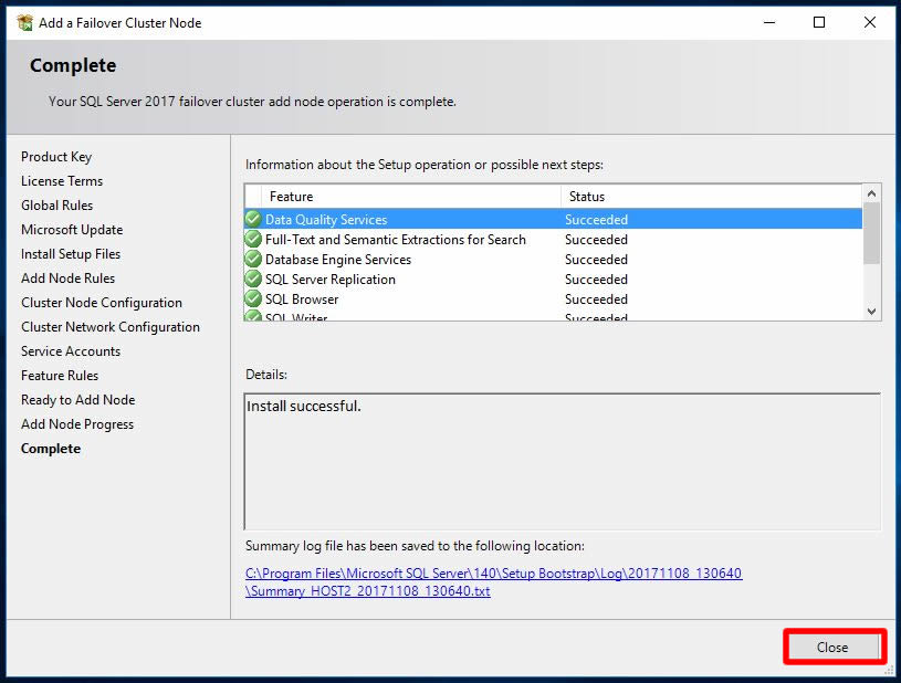 Host2 isimli ikinci node’umuza üzerinde kurulum adımlarımızda başarı ile tamamlandı. Close ile ekranımızı kapatabiliriz.