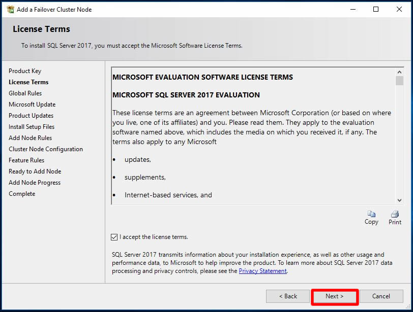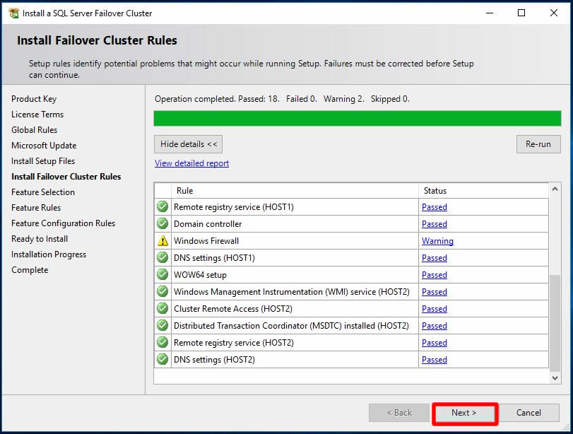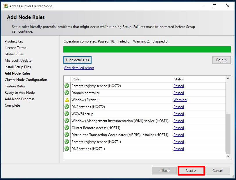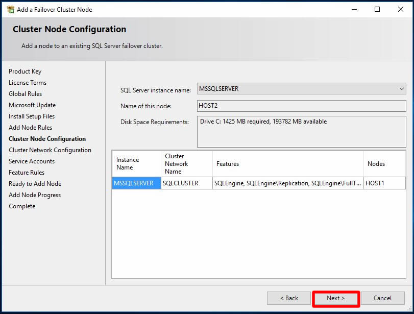 HOST2 isimli node’umuz için eklenebilecek SQL Server Instance Name bilgisi karşımıza geldi. Biz mevcut Clustere node ekleyeceğimiz için Next ile sonraki adıma ilerleyelim.
