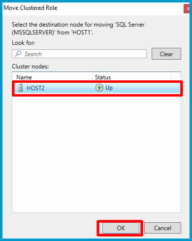 Rolümüzü taşıyacak olduğumuz Host2 isimli diğer Node seçimini yapalım ve OK ile taşıma işlemini başlatalım.