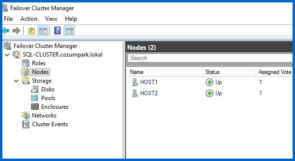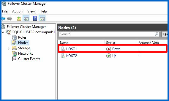 Cluster Rolünün otomatik olarak Host1 isimli diğer Node’un üzerine geçtiğini görebiliyoruz.
