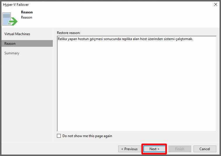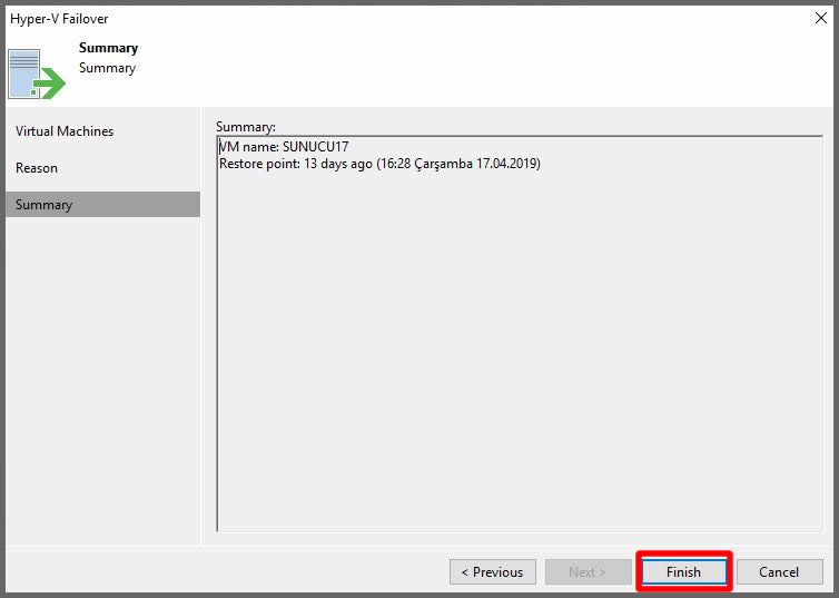Finish butonuna tıklayarak Failover senaryomuzu başlatalım.