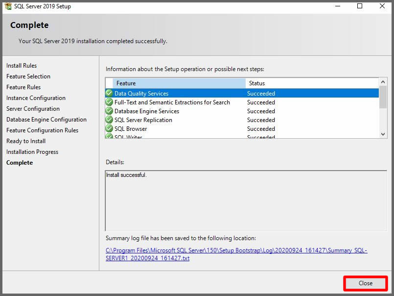 Kurulum işlemi sorunsuzca tamamlandı. Close ile bu ekranımızı kapatabiliriz.