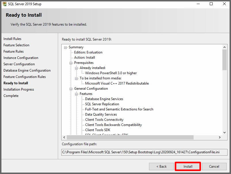 Sonraki ayarlarımızı default olarak bıraktık. SQL Server kurulumu noktasında detaylı performans analizi yaparak kurulum yapmak için https://www.cozumpark.com/sql-server-2019-kurulumu/ buradaki adımları takip edebilirsiniz. Install butonuna tıklayarak kurulumu başlatalım.