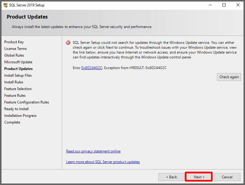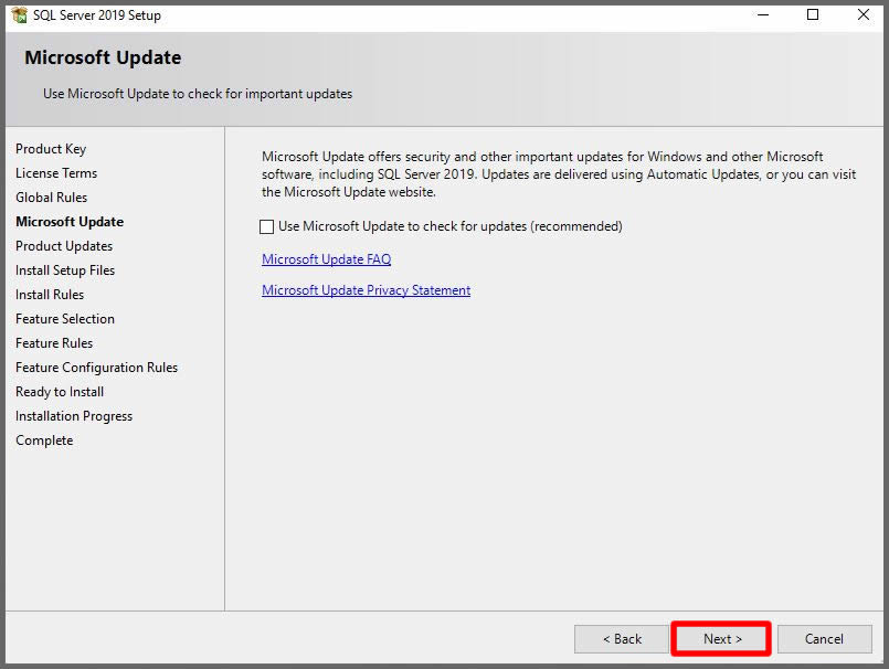 Use Microsoft Update to check for updates (recommended) ile güncellemeleri denetlemeniz yararlı olacaktır. Biz test ortamında olduğumuzdan dolayı ben bu adımı atlayarak Next ile sonraki ekrana ilerliyorum.