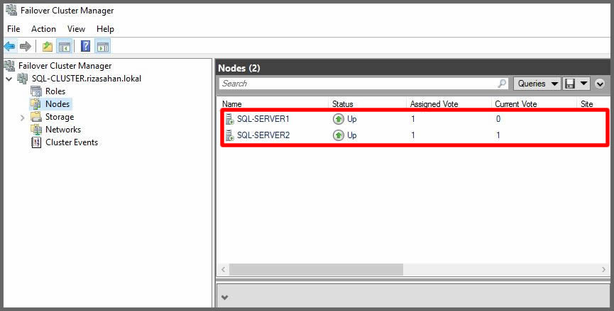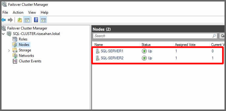Şu anda SQL-Server1 ve SQL-Server2 isimli node’larımız UP duruma geçti.