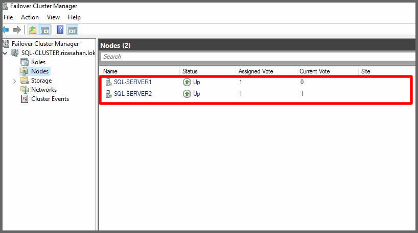 Bu işlem sonrasında Failover Cluster Manager konsolu üzerine tekrar baktığımızda sunucularımızın ikisinin de UP olduğunu görebiliyoruz.