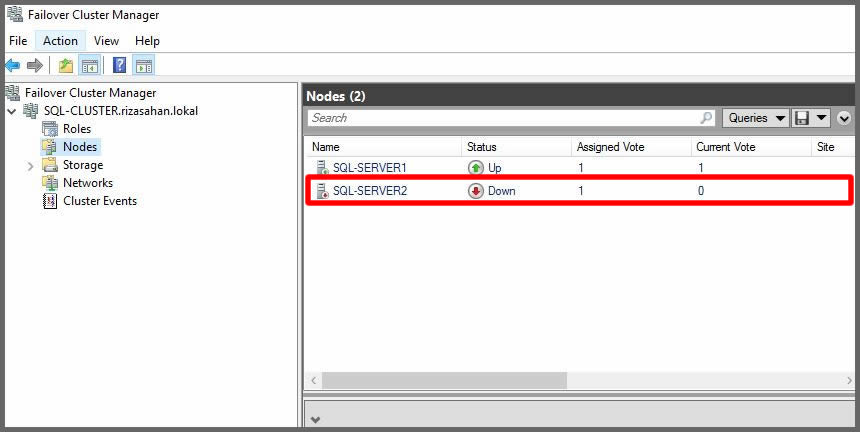 SQL-Server2 isimli sunucumuz cluster üzerinde Down duruma geldi.