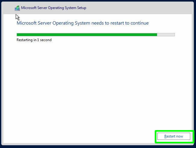 Kurulum tamamlandı son yapılandırmalar için sistem kendiliğinden yeniden başlamakta. Dilersek Restart Now butonuna tıklayarak süreci hızlandırabiliriz.
