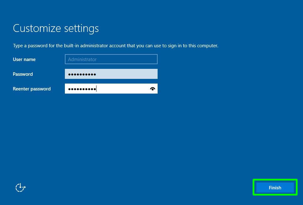 Kurulum işlemimiz tamamlandı. Yönetici parolası belirleyerek Finish ile süreci tamamlayalım.