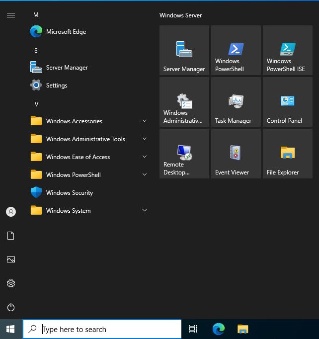 Login olduğumuzda Windows 10 işletim sisteminin ara yüzüne benzer bir ara yüz bizi karşılıyor. Windows 10 20H2 kerneli ile Windows Server 2022 kerneli aynı versiyona sahip.