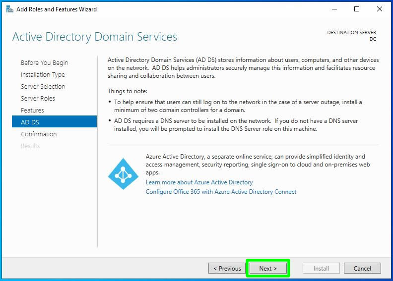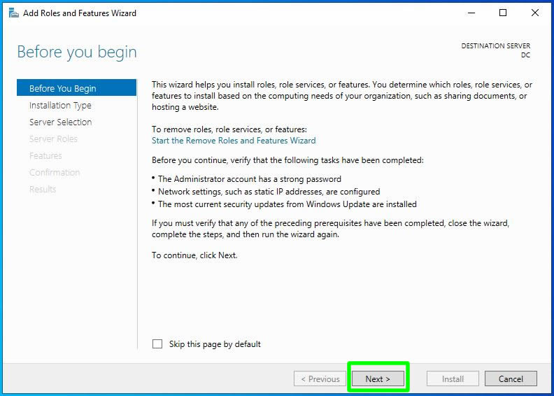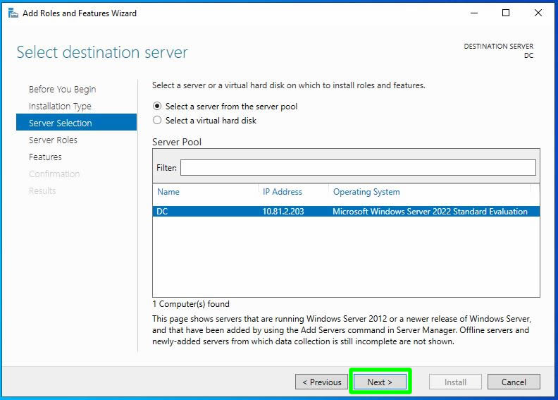 Şimdi kurulacak olan rolümüz seçili hale geldi. Bir sonraki adıma ilerleyebiliriz. Şimdi Next butonuna tıklayarak bir sonraki adıma ilerleyelim.