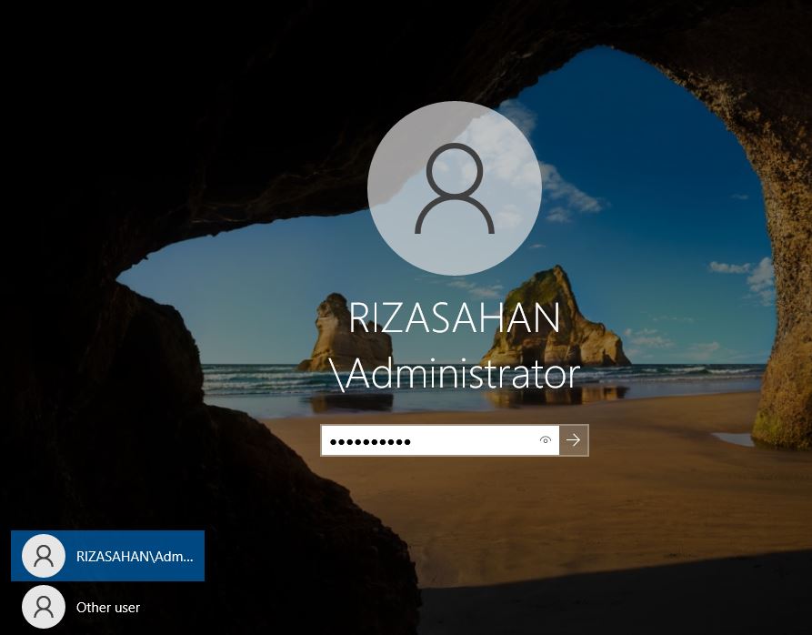 Ayarlarımız tamamlandı ve Domain rolü kuruldu. RIZASAHAN\Administrator olarak oturum açabilir duruma gelmiş bulunuyoruz.