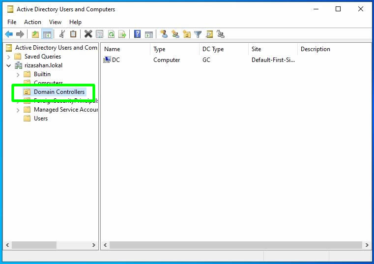 Active Directory User and Computers kabında DC isimli domain computer hesabının oluştuğunu görebiliyoruz.