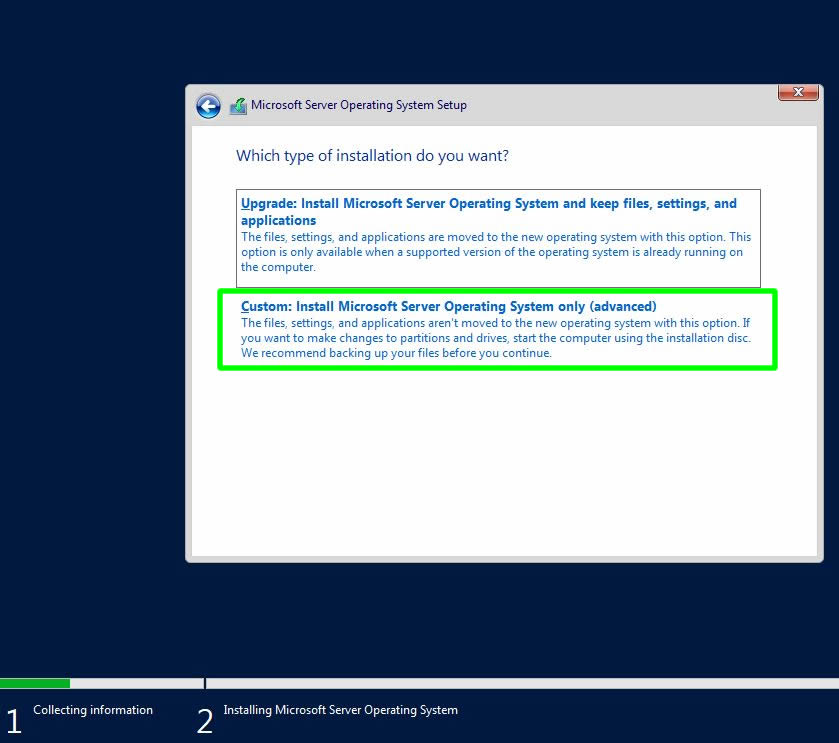 Biz bir yerinde yükseltme işlemi v.s. yapmayacağımız, temiz kurulum yapacağımız için Custom: Install Windows only (advanced) seçimini seçerek Next ile sonraki adıma geçiyoruz.