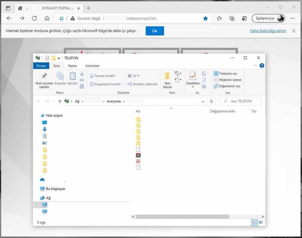 Internet Explorer mode ile açılan sayfamızda linke tıkladığımızda Windows Gezgini açılıyor ve amacımıza ulaşıyoruz.
