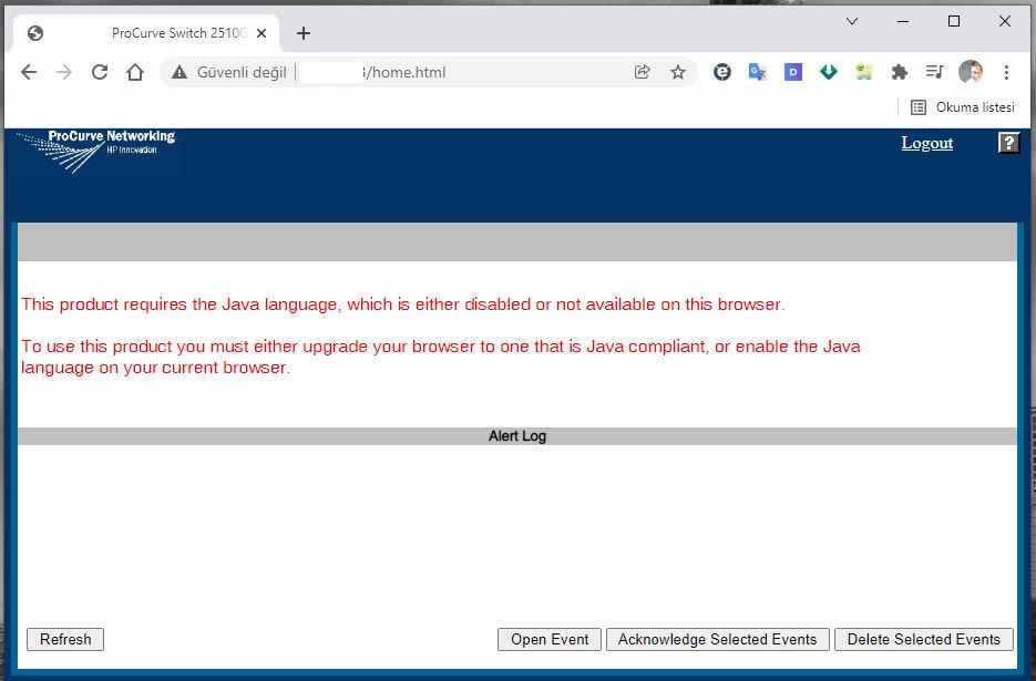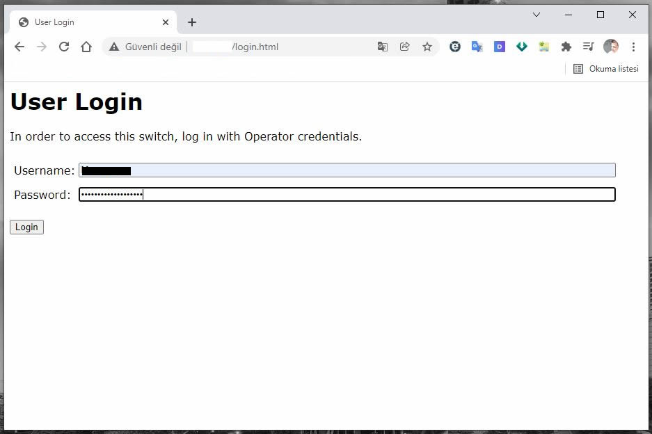 Buraya kadar olan kısımda bu şekilde sorun yaşanan sistemlerde ne gibi çözümler üreteceğimizi ele aldık. Bu işlem için Chrome üzerinde neler yapabiliriz birazda bu kısmı ele alalım. Yine elimde yönetilebilir bir switch bulunmakta ve arayüzünün yönetimi Internet Explorer üzerinden yapılabilmekte. Bu işlemi Chrome ile nasıl aşacağız ele alalım.