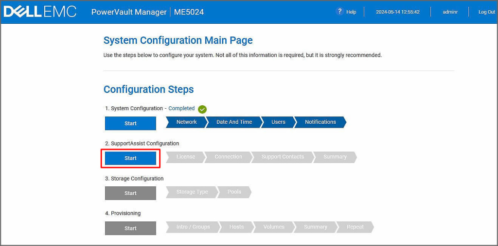 Şimdi ise Support Assist Configuraiton ayarlarını yapabilmek için Start butonuna tıklayalım.