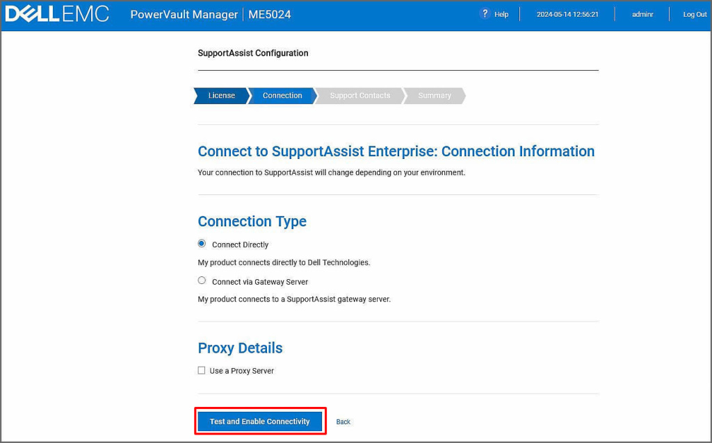 Arada bir Proxy v.s. kullanmayacağımız için Test and Enable Connectivity butonuna tıklayalım.
