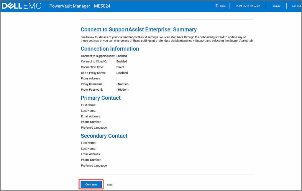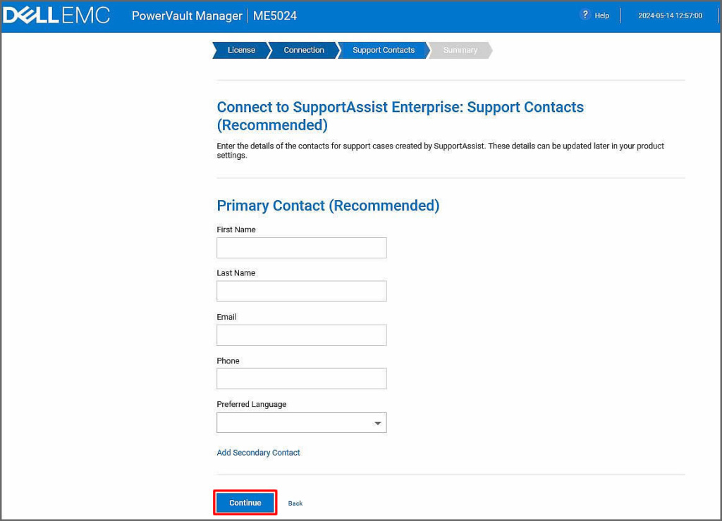 Bu ekranımıza ise kuruluşumuzda iletişim kurulacak olan kişi veya departman bilgilerini girerek, Continue butonuna tıklayarak sonraki adıma ilerleyelim. Tabi biz bu alanları sonradan detaylı yapılandıracağımız için ilerliyoruz.