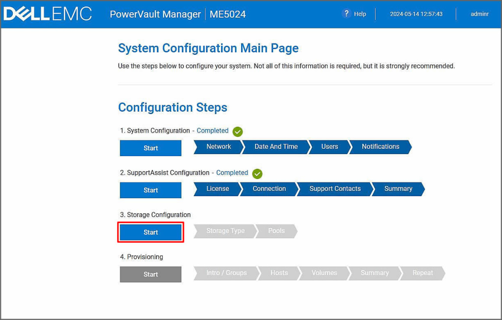 Storage Configuration alanındaki işlemleri bağlatmak için Start butonuna tıklayalım.