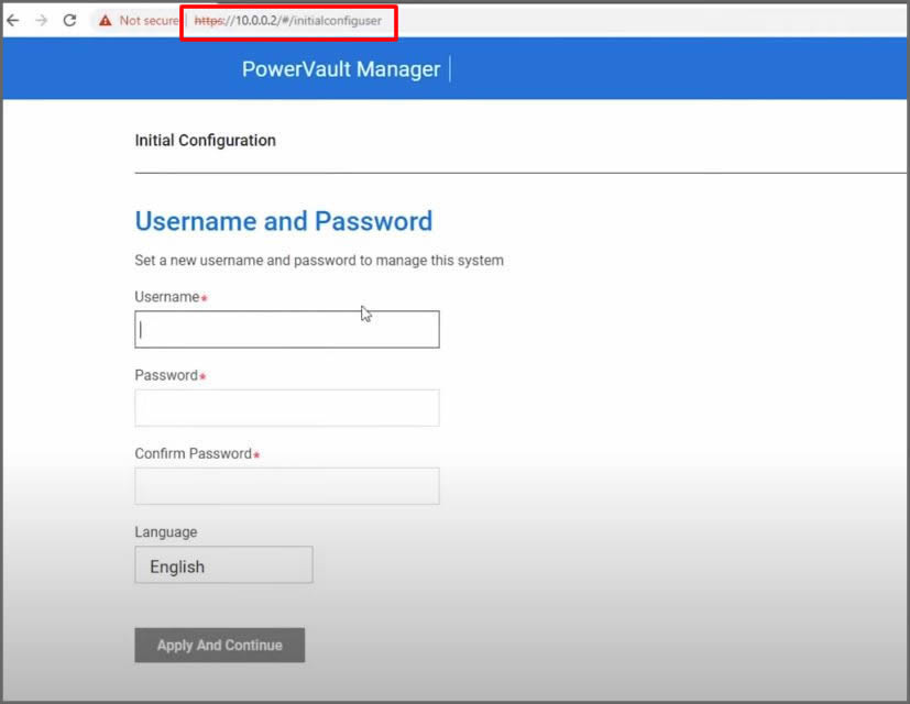 Cihazın varsayılan ip adresi 10.0.0.2 şeklindedir. İlk kez bu ip adresi üzerinden, Web arayüzden  erişim sağlamamız durumunda, cihazı yönetebilmek adına bizden bir kullanıcı adı ve parola tanımlamamız istenmektedir. Gerekli olan kullanıcı adı ve parolamızı tanımladıktan sonra Apply And  Continue butonuna tıklayarak sonraki adıma ilerleyelim.
